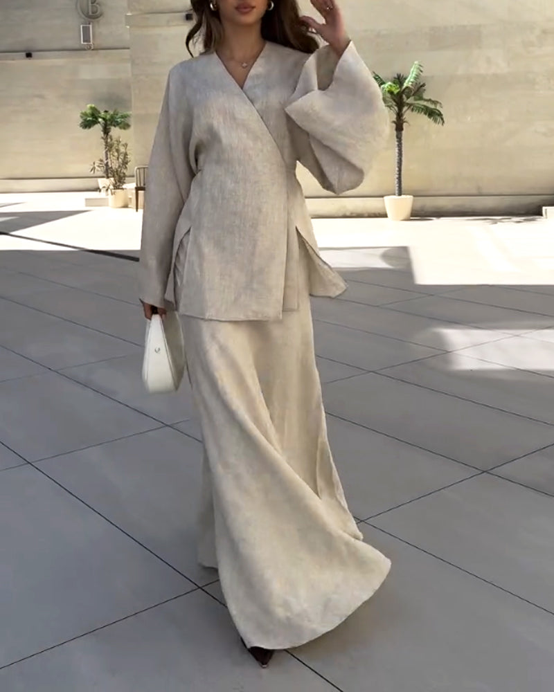 Casual V-Neck Split Shirt