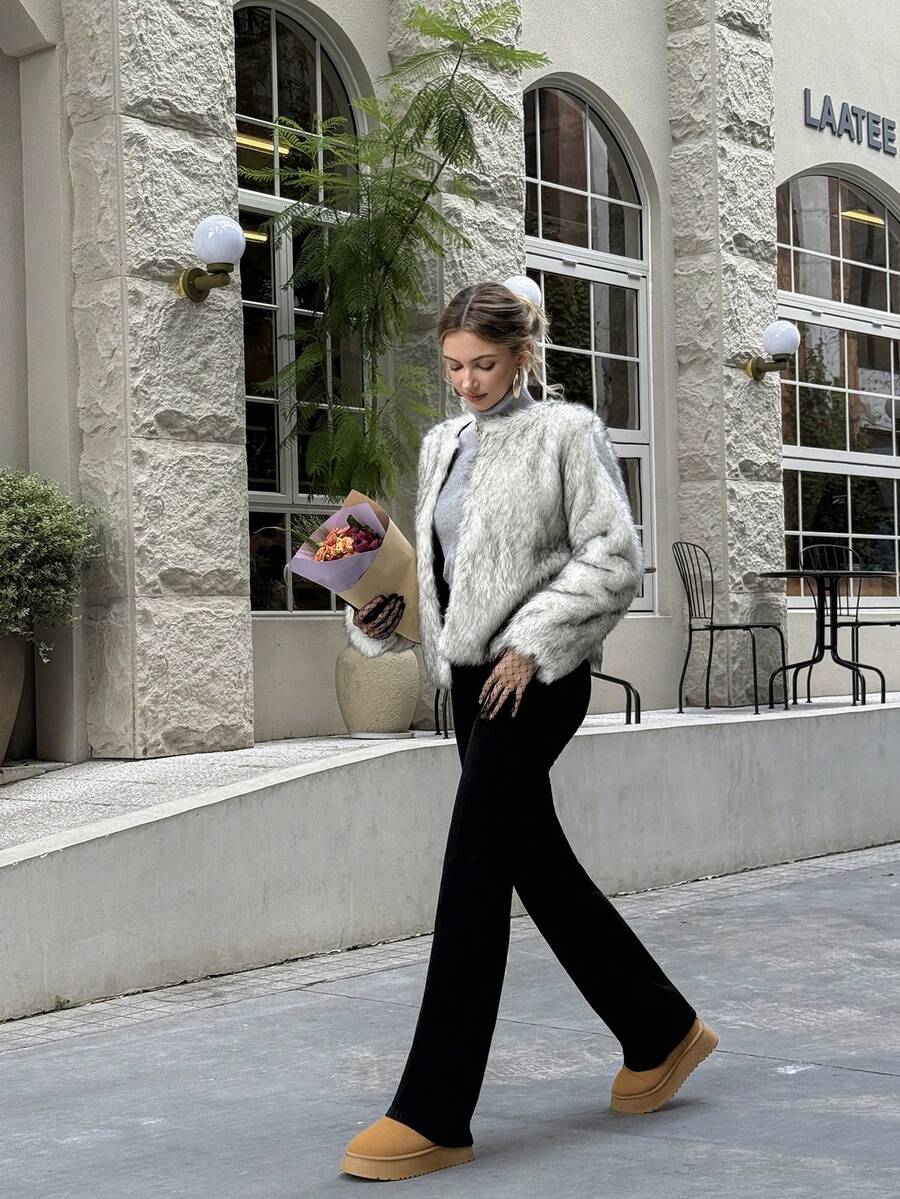 Whether you pair it with jeans, a dress, or boots, this faux fur jacket adds a touch of sophistication to your look. Easy to style and effortlessly chic, it quickly becomes a must-have in your wardrobe — a timeless investment for the modern woman who wants to feel both elegant and warm.